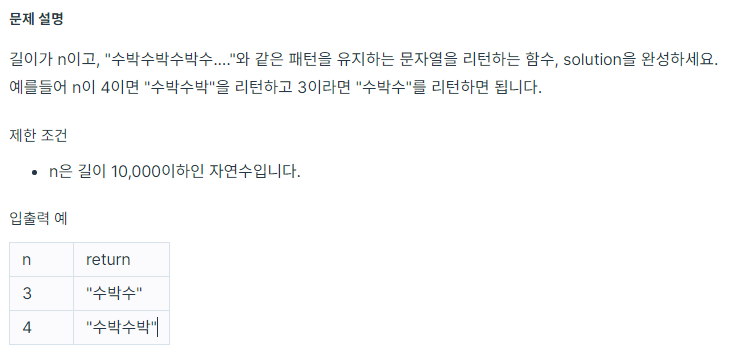 if문을 통해 짝수가 아니라면( i%2 != 0) answer에 "수" String을 추가해줌.